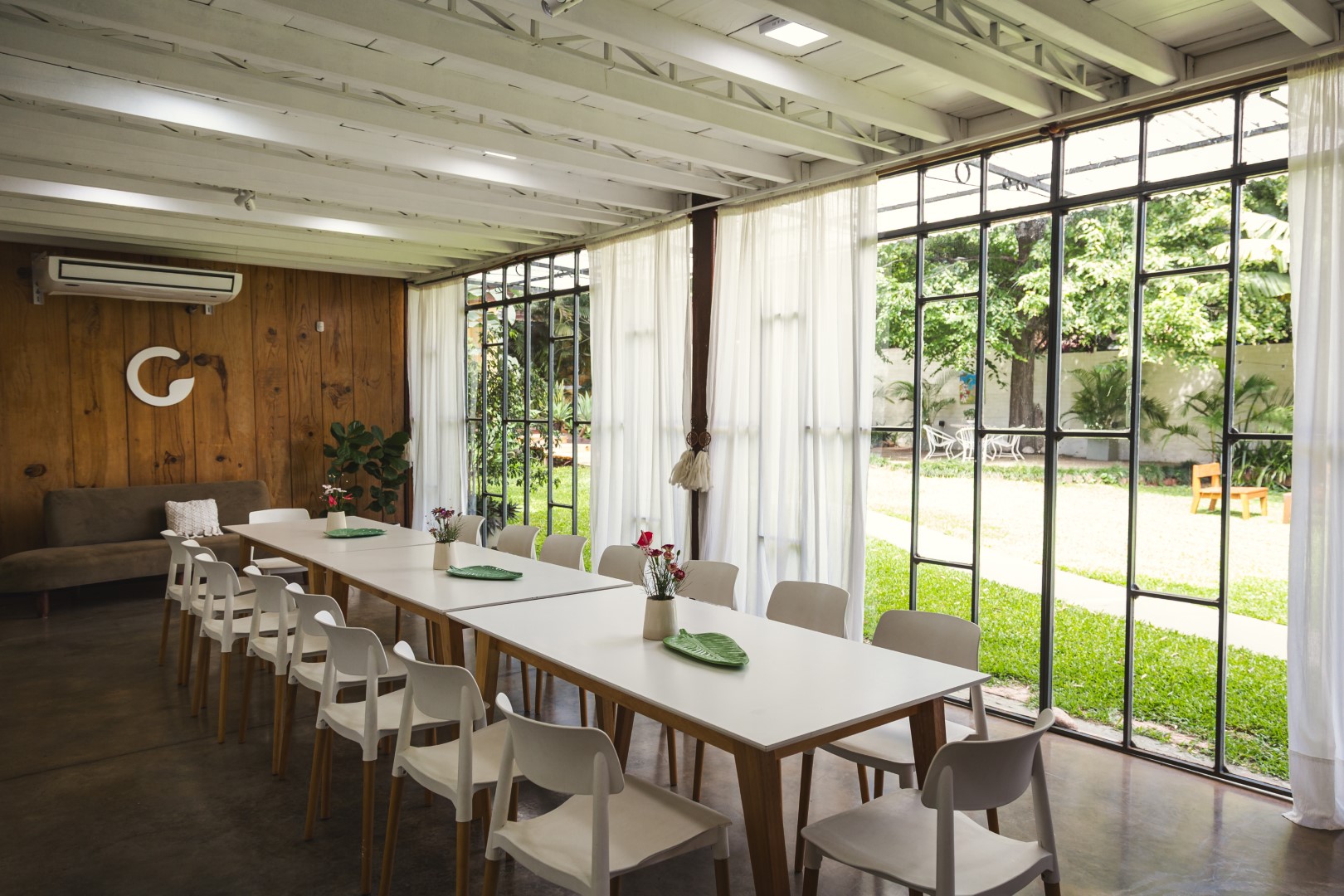 Nuestro salón es un espacio cálido, luminoso y rodeado de verde, pensado para vivir momentos con alma. Ideal para celebraciones íntimas, talleres, presentaciones o encuentros culturales.