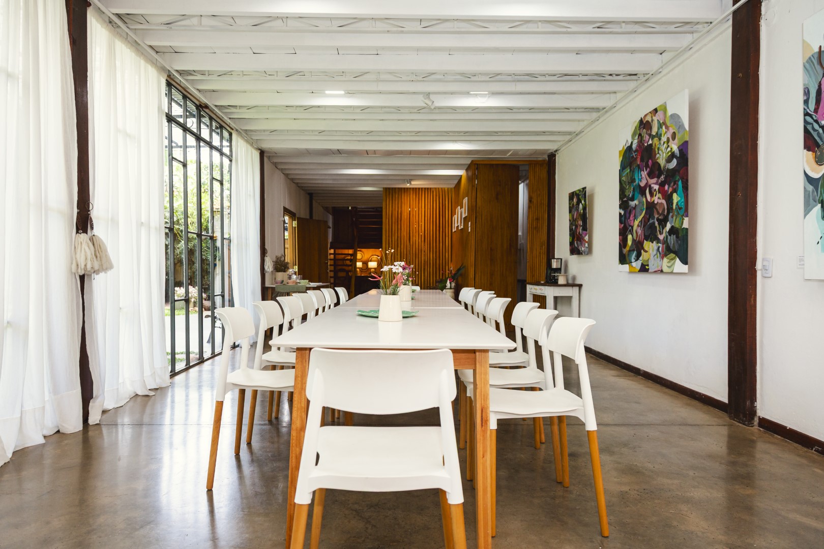 El salón tiene capacidad para hasta 40 personas, ideal para celebraciones íntimas, talleres o encuentros culturales en un entorno natural y tranquilo.